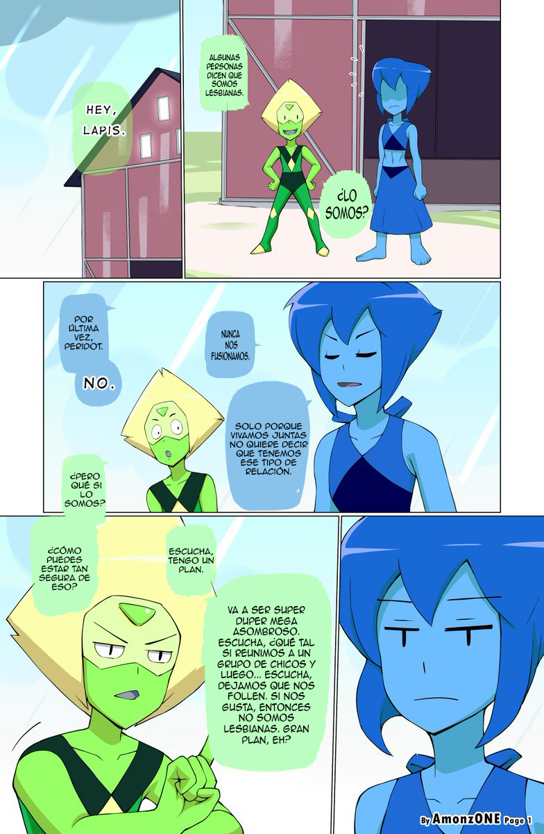 Peridot y Lapis están cansadas de que piensen que son lesbianas solo por vivir juntas y ser muy unidas. Aún así, Lapis duda en si realmente lo son, después de todo nunca han estado con hombres para poder comprobar si les gustan. Por eso se le ocurre la brillante idea de que deben probar follar con un grupo de hombres para poder determinar si son lesbianas o no.
