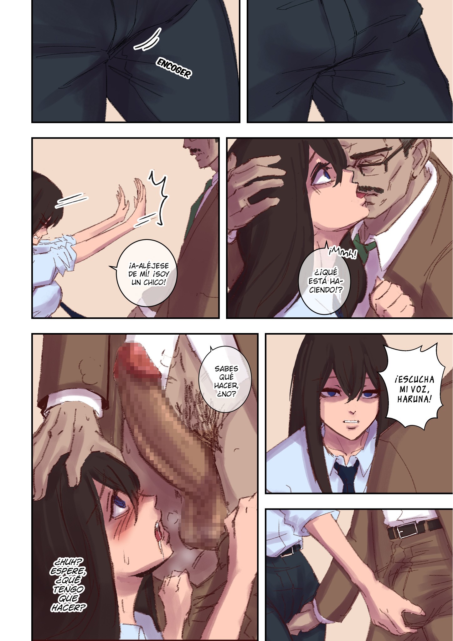 Su jefe dice con total seguridad que él es Haruna, pero Koichi intenta corregirlo y le dice que se está confundiendo. Pero no deja de sentirse extraño con lo que está sucediendo con su cuerpo, y enloquece aún más cuando su jefe se acerca tanto a él hasta el punto de llegar a tocarlo. Él le grita que se aleje, diciéndole que es un chico, pero Hiruto lo agarra por la cabeza hasta atraparlo fuertemente y lo baja hasta tenerlo de rodillas frente a su polla erecta.