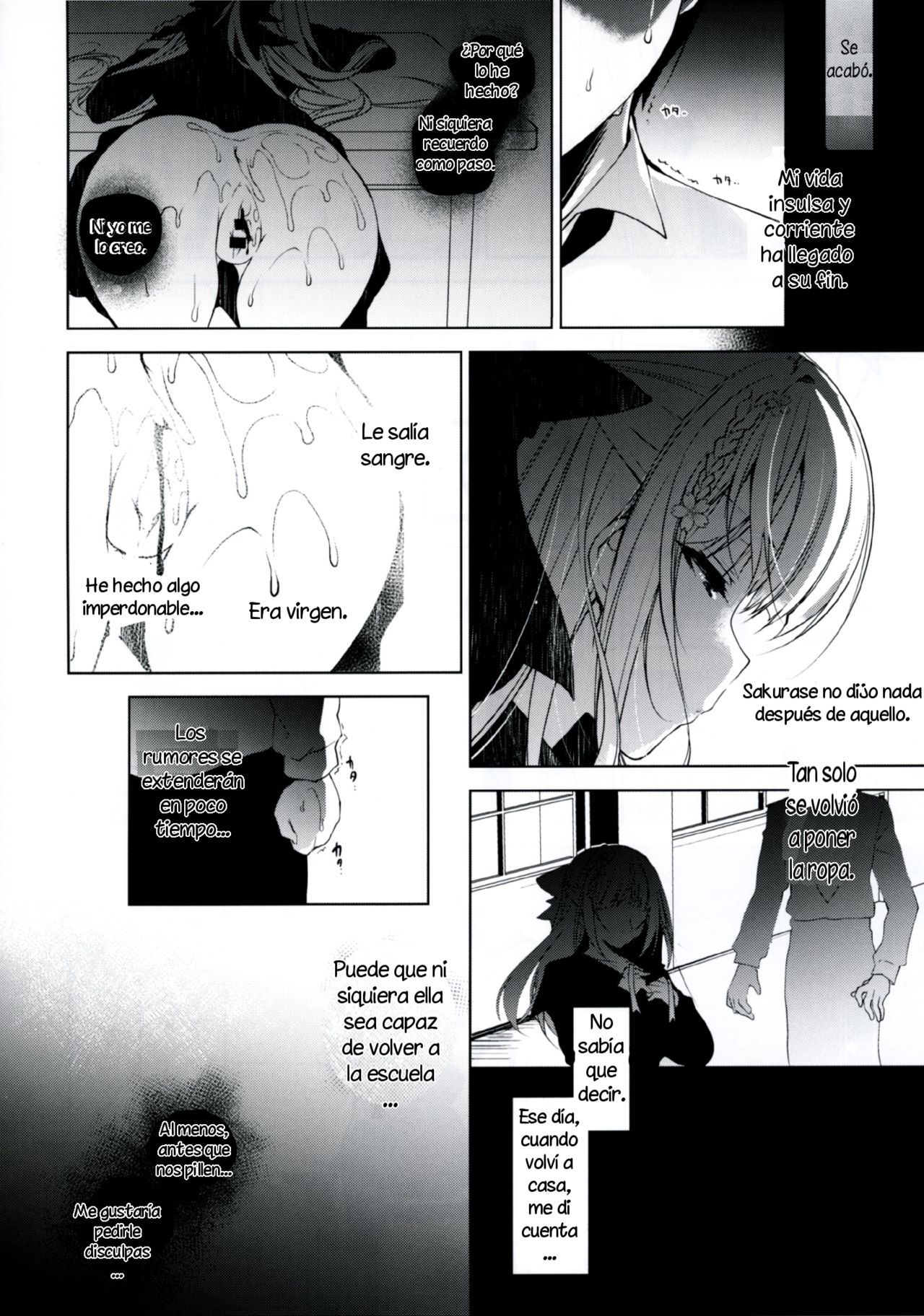 Aunque fue horroroso, él mismo se sentía atraído por ella. Aún así, saber que la follo en su salón, notando incluso que fue él quien le quito su virginidad, era algo imperdonable. Sakurase no dijo nada, solo se levantó y se fue.