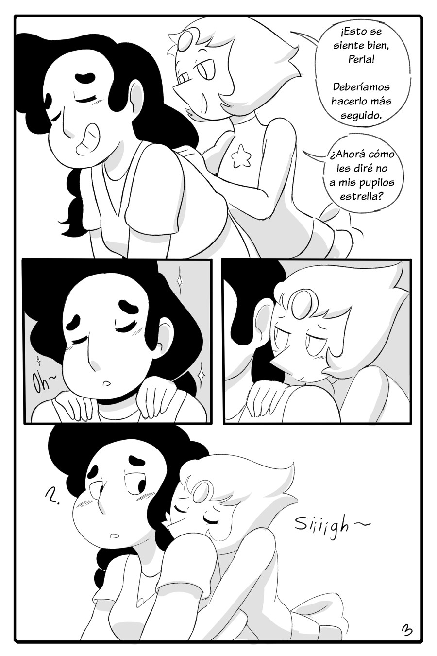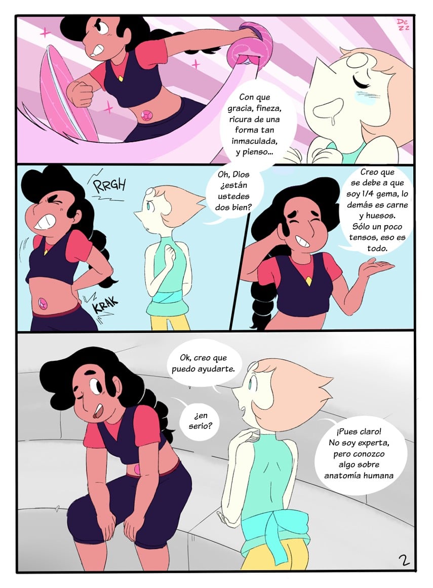Automáticamente Stevonnie siente como un bulto comienza a levantarse en su pantalón.Ella se averguenza, pero Perla continúa haciéndole el masaje por su espalda. Sin embargo Stevonnie quiere que ella baje un poco más.